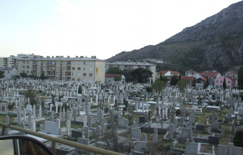 Poi i cimiteri: ovunque... addossati a chiese, minareti, case e negozi. L'autocamp ci sembra l'unica soluzione "forse" possibile. I km dal centro città al paese di Blagaj sono 10 e le nostre perplessità aumentano: costeggiamo la pista di una specie di aereoporto, quindi terra brulla, case distrutte e ancora cimiter.