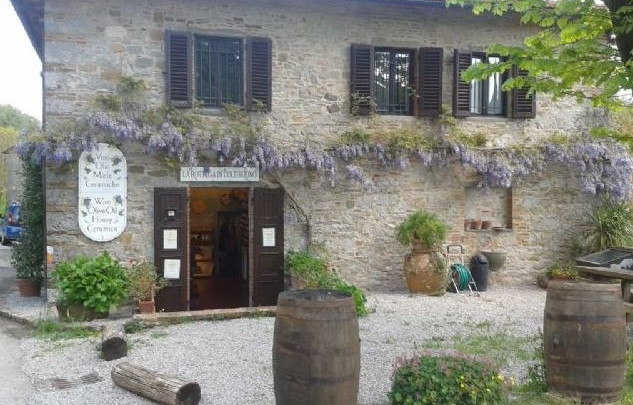 Dopo Siena, il mio programma prevede tappa nei paesini del Chianti. Ormai le dolci colline della Val d’Orcia lasciano spazio ai monti più selvaggi del Chianti. Attraversiamo Gaiole e Radda in Chianti, paesini troppo piccoli per una breve sosta col camper, quindi proseguiamo verso Castellina in Chianti. Prima però, una graziosa casetta immersa nel verde, lì da sola, cattura la nostra attenzione, e decidiamo di fermarci. Sembra una casa isolata e ferma nel tempo e nello spazio, immersa in una natura affascinante. Ci avviciniamo e con gioia apprendo che al piano di sotto vi è una bottega. Posso quindi entrare, e lasciarmi catturare dalla suggestiva atmosfera. Arrivati a Castellina, troviamo parcheggio, giusto per il tempo di passeggiare nel piccolo centro, molto grazioso, con qualche trattoria tipica e qualche rivenditore diretto di prodotti del proprio podere… Peppe si lascia tentare e acquista del buon vino. Scopriamo che Castellina era uno dei capisaldi della Lega del Chianti… Lungo la strada per Poggibonsi ci fermiamo, dopo una serie di manovre, ad ammirare un altro paesaggio, ma inizia a piovere e rimontiamo su, continuando a scrutare quel paesaggio dall’alto del nostro camper! (A volte ci sembra di salire su un camion!)