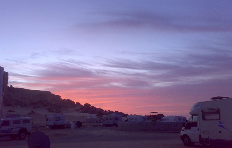 Stamattina è ripartita la coppia di Vittorio Veneto che avevamo conosciuto a Dakhla. Sembra ormai chiaro come funziona: si conoscono tutti in tutti i posti perchè sono sempre gli stessi e frequentano generalmente, fatalmente, i medesimi punti sosta, seppur in tempi diversi, in salita o in discesa, e perciò ormai da molti anni si rincontrano ad ogni inverno.