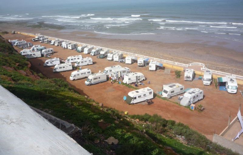 Per completare la pratica “danni “ marocchina, volendo chiudere in bellezza, con un buon pranzo, il nostro soggiorno ad Agadir, ci siamo fermati al Ristorante della spiaggia. Eravamo preoccupati per le nostre provviste sotto il sole e per il frigo in agonia. Il cameriere Pas de problèmes, desideroso di aiutarci ci suggerisce di attaccare provvisoriamente la corrente, giusto per la durata del pasto, insistendo nel far farci delle manovre col camper per sistemarci a portata di contatore.
