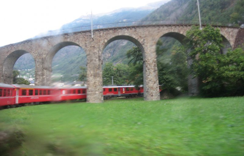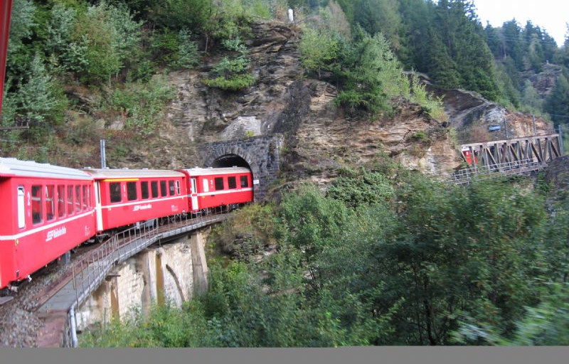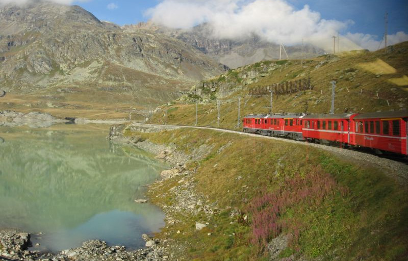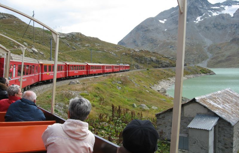 Domenica mattina ore 7.30 tutto il gruppo di www.viaggiericordi.com si ritrova alla stazione di Tirano sul trenino rosso. Si parte! Tutto il percorso, due ore e mezza circa, è un panorama dopo l'altro. Siamo tutti ai finestrini ad ammirare il lago, la montagna, la cascata, il bosco, il grande ghiacciaio, la ferrovia che come un serpente striscia salendo e scendendo i pendii. Il viaggio è veramente entusiasmante, suggerisco l’esperienza . All’arrivo, la passeggiata intorno al lago di St. Moritz è piacevole come pure la visita in centro ma, siamo tutti “gasati” pensando al ritorno sul trenino rosso.