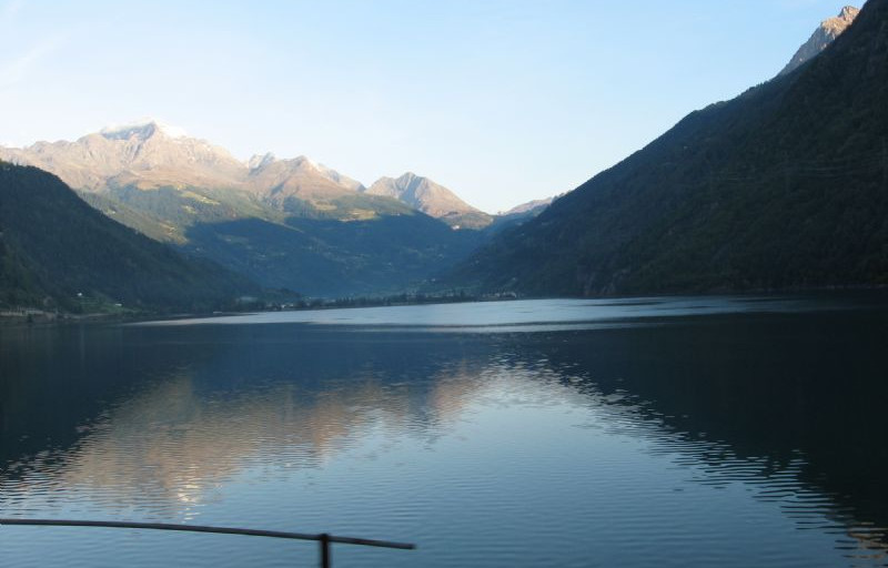 Parcheggiamo il camper nella bella area a Tirano. L'area è vicino al centro, tranquilla, a pagamento (10 euro al giorno) con luce, carico e scarico.