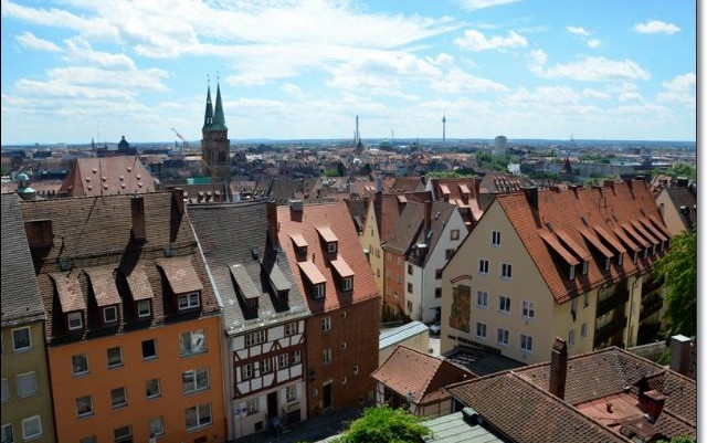 Il camping è accanto al Nurnberg Messe, centro congressi alle porte della città. Dobbiamo però camminare una mezzoretta per orientarci ed individuare la fermata della metropolitana che scopriamo essere giusto dalla parte opposta del centro stesso. La fermata (che ha lo stesso nome del centro congressi) è della linea U1 ed in una decina di minuti conduce in centro (fermate Hauptbahnhof oppure Lorenz Kirke), per l'esattezza su Konigstrasse, via pedonale che unisce i luoghi simbolo della città. Oggi è domenica ed i negozi tutti chiusi, ma non mancano molti turisti ed è tutto un brulicare di persone ovunque. Passiamo davanti alla chiesa St. Martha, sede dei "Maestri Cantori di Norimberga", e la gotica St. Lorenz quindi giungiamo nella piazza principale, la Hauptmarkt, dove possiamo ammirare anche la Schöner Brunnen, originale fontana a forma di pinnacolo alta 19 metri, ricchissima di particolari tutti dorati nel quale cancello trova posto un anello che, se ruotato su se stesso per tre volte consecutive, si dice porti fortuna (e noi come tutti del resto, non possiamo resistere alla tentazione …). Proseguiamo verso il Burg, maestosa fortezza che domina la città, all'interno del quale si trova il Kaiserburg, residenza della famiglia imperiale. Tornando indietro passiamo davanti all'ex ospedale di S. Spirito (Heilig Geist Spital) sulle sponde del Pegnitz e nuovamente su Konigstrasse ci fermiamo a mangiare sotto il gazebo di uno dei tanti bar/ristoranti presenti, unici esercizi commerciali oggi aperti. Verso le 18.00 riprendiamo la via del ritorno e dopo 45 min circa siamo nuovamente in campeggio dove replichiamo la serata precedente … NB Per la metro abbiamo acquistato un biglietto da € 8,50 cumulativo per gruppi fino a 6 persone (di cui max due adulti) e valevole sull'intera tratta e per 24 ore.