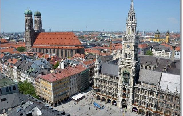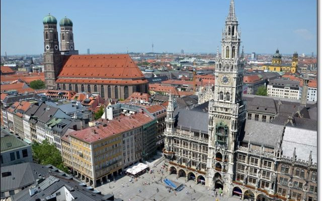 Alla cassa del campeggio acquistiamo il biglietto del bus cumulativo (€ 10,90 per l'intero nucleo familiare, valevole su tutta la tratta fino alle 6.00 del giorno seguente) e con la navetta 135 (frequenza ogni 20 min) raggiungiamo la fermata della metro U-Bahn: percorso brevissimo (un km circa) che volendo potrebbe anche essere effettuato a piedi. Di qui prendiamo la U3 ed in poche fermate siamo in Marienplatz, vero centro di Monaco. Sulla piazza domina la sede del municipio, imponente edificio neogotico caratterizzato dalla presenza di una torre alta 80 metri che ospita il famoso Glockenspiel, il più grande carillon della Germania che si aziona tre volte al giorno: alle 11.00 alle 12.00 e nei mesi estivi anche alle 17.00. Visitiamo anche la Frauenkirche, cattedrale famosa per i due campanili gemelli alti quasi 100 metri, altro simbolo della città. Ci spostiamo quindi nel vicinissimo Viktualienmarkt, il più famoso mercato scoperto di Monaco. Un'area di oltre 20.000 mq dove si trovano ordinatissime bancarelle che vendono ogni sorta di prelibatezza alimentare, oltre a numerosissimi locali dove consumare cibi di ogni tipo. Noi scegliamo insalata a base di gamberi ed immancabile birra fresca: il tutto, come sempre, su grandi tavolate all'aperto in compagnia di una miriade di turisti mescolati ad abitanti del luogo. Visitiamo poi, ma solo dall'esterno, Residenz, il palazzo reale di Monaco e passeggiamo tra negozi di souvenir ed altri extra lusso dove ci sono gioielli da centinaia di migliaia di euro! Nel tardo pomeriggio facciamo rientro al camper e dopo cena una passeggiata nel grande parco dove scorre il fiume Isar e trova posto il campeggio.