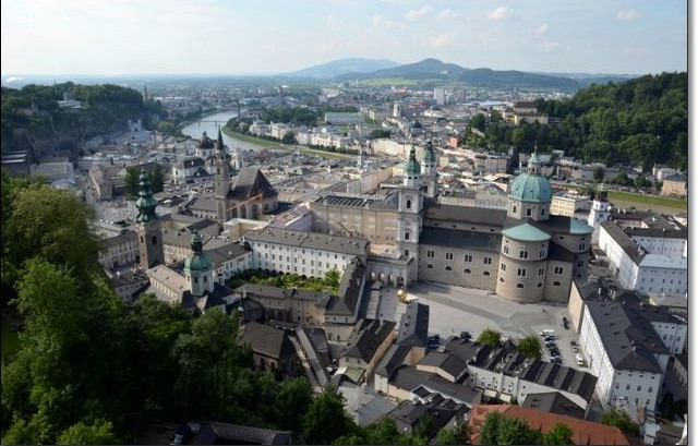Le previsioni meteo annunciano tempo variabile ed il cielo non promette nulla di buono. L'unico dubbio riguarda ovviamente il piccolo Matteo e la difficoltà di coprire la carrozzina durante un eventuale temporale, ma non ci lasciamo fermare e decidiamo comunque di raggiungere il centro città. Acquistiamo, presso la reception del campeggio, la Salisburg Card (€ 65 due adulti ed un bimbo, il più piccolo gratis) che consente di spostarsi liberamente sui mezzi pubblici e visitare molti palazzi e musei. Fuori dal campeggio prendiamo il bus 23A ed in pochi minuti siamo in centro dove visitiamo la casa di Mozart e passeggiamo tra splendidi palazzi fino all'ora di pranzo. Nel pomeriggio il meteo volge al bello e la città ha un altro aspetto. Saliamo con la funicolare alla fortezza medievale dove, oltre a visitarne gli interni, godiamo di un panorama unico sulla città. Sono le 20.00 circa ed il cielo è di un azzurro intenso, ma siamo decisamente stanchi (spingere la carrozzina sulle vie acciottolate del centro è tutt'altro che piacevole) e così rientriamo al camper, contenti comunque della bella visita e di come il piccolo Matteo stia reagendo al viaggio.