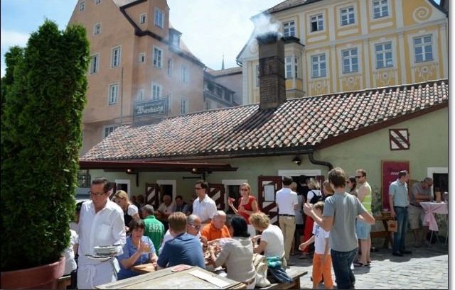 La notte trascorre in assoluta tranquillità, ma ci rendiamo conto che il mezzo lì non può stare durante il giorno e quindi ci spostiamo di qualche centinaio di metri, presso un P+R (che avevo notato la sera prima tra i tanti giri, ma non so perché, ignorato completamente …) dove con enorme sorpresa troviamo una ventina di camper! Si tratta infatti di un parcheggio molto grande ed una zona di questo è destinata ai VR:il P+R è il Unter Wohrd am Winterhafen, in wordstrasse 62 (N49°01.249 E012°06.690). Nuovamente sulle rive del Danubio, oltrepassiamo un ponte e siamo in centro dove subito apprezziamo la bellezza di piazze e cattedrali, tra cui la più famosa di San Pietro. Passiamo sul famoso Steinerne Brücke (ponte di pietra), edificato intorno al 1200 e ritenuto dai superstiziosi opera del diavolo e subito accanto troviamo la famosa Wurstküche, un antico locale dove vengono cotte alla griglia buonissime salsicce di maiale che, a detta degli abitanti, sarebbero le più buone del mondo! Che questo sia vero o meno non lo sapremo mai, di sicuro è però molto caratteristico: di fatto si tratta di una "birreria" all'aperto dove sotto affollatissimi ombrelloni ci sono panche e tavoli perennemente affollati, il tutto pervaso dal fumo del camino che emana un buonissimo odore in tutta la zona. Attendiamo che si liberino tre posti, quindi riusciamo a sederci per un ottimo pranzo (con buonissima birra fresca) in piacevole compagnia … Nel pomeriggio lasciamo Regensburg e dirigiamo ad Amberg, che raggiungiamo in un'oretta circa. Questa volta le coordinate della guida (confermate anche da Bordatlas) si rivelano esatte e raggiungiamo l'AA riservata ai camper, ma ennesima sorpresa, una catena ne impedisce l'ingresso. Ci sono una decina di mezzi (e se parcheggiati meglio ce ne starebbero ancora due o tre) che sembrano quasi "stanziali". Un signore, per altro molto cortese (proprietario del primo mezzo vicino all'ingresso), mi conferma che lì posto non ce n'è e che in città non ci sono altre sistemazioni. Mi indica un luogo tranquillo, vicino ad un supermercato Netto, comunque fuori città di alcuni chilometri. La chiusura dell'area non mi convince affatto e, benché il posto per noi ci sarebbe comunque, decido di non approfondire e così accetto di buon grado le indicazioni e me ne vado via. Proviamo a seguire le indicazioni della guida camper stop, ma ancora una volta si rivelano dei "buchi nell'acqua" e così non ci mettiamo molto per decidere che forse è meglio dirigere altrove. Forse ci perdiamo una bella visita, ma la prossima tappa è Norimberga e decidiamo di dedicargli del tempo in più rispetto al previsto. Verso le 18.00 entriamo nel campeggio della città, il Knaus Campingpark: non è molto grande, ma ci sono i servizi essenziali con bagni molto puliti (e musica country all'interno). Possiamo così goderci una bella serata fuori dal camper prima di cena e l'indispensabile doccia prima del sonno …