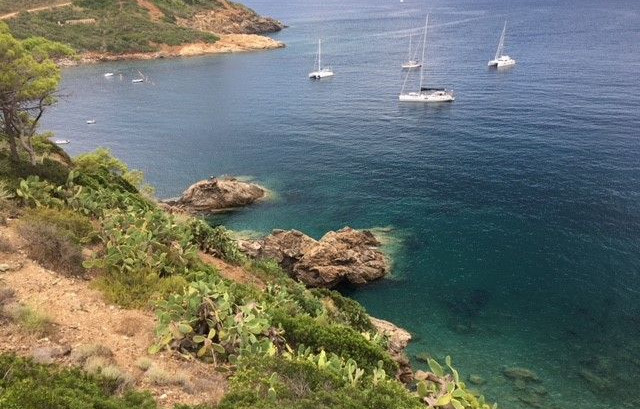 L'Elba da questo lato è molto suggestiva, pareti alte e piccole spiagge molto rosicate alla montagna... quindi Fetovaia, Seccheto e Cavoli. Non ci fermiamo perché sono posti già visti, l'unico punto dove riuscire comunque a fermarsi è a Seccheto, alle piscine.