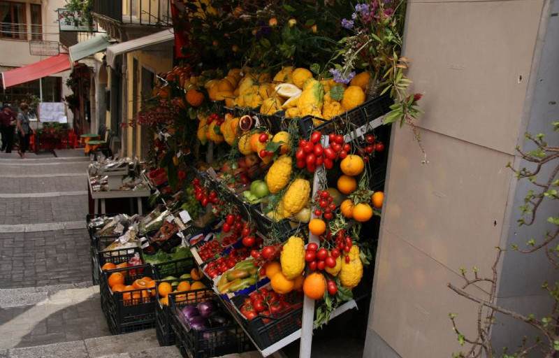 all’ inizio della vacanza in via Quarto dei Mille e da lì, preso l’autobus 105, siamo andati a fare il pieno di frutta, verdura e pesce al mercato di Ballarò. Poi, vista l’ora, ci siamo fermati a mangiare all’angolo della gastronomia di Aliotta Davide in C.so Calatafimi, come già fatto all’arrivo a Palermo la volta prima. Ambiente da Take Away, ma tutto buono e a buon prezzo!