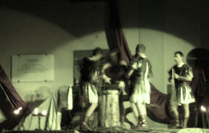 La sera del 22/4 in Civita di Bagnoregio verso 21,30 ha inizio la passione di Cristo, con la processione che attraversa le strade del centro, è ripresentata negli anni soprattutto per fini turistici, nel suo suggestivo borgo medioevale , TEATRO SACRO della Passione di Cristo.La popolazione partecipa alla sfilata che accompagna Cristo al patibolo,preceduta da tre cavalli neri guidati da un guerriero e da tanti figuranti .Il momento saliente della rievocazione sono le cadute di Gesù che avvengo in luoghi prestabiliti davanti alla tribuna centrale.