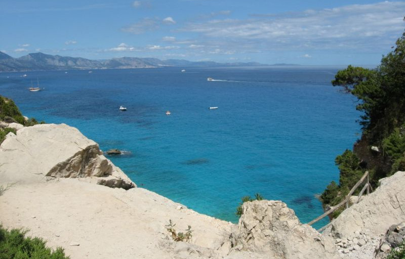 Il camper è in prima fila, il portellone del traghetto scende ed ecco davanti a noi in tutto il suo splendore il mare cristallino, le montagne a picco sull’acqua e il bel sole sardo.