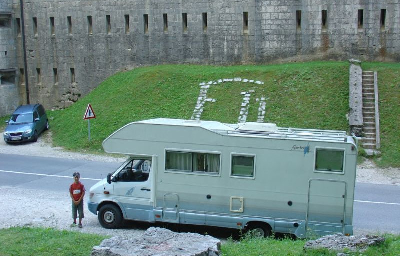 Tornati al camper, al pomeriggio visita al forte di Kluze (ricostruito; deludente) e poi viaggio fino a Sella Nevea; sulla strada breve sosta al forte di …….