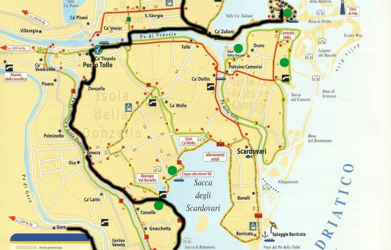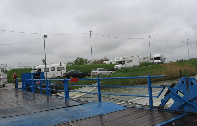 Dopo la sosta serale al lido di Volano e la visita alla Basilica di Pomposa eccoci in fila sul ponte di chiatte di Goro (passaggio euro 2,60) per proseguire poi verso Bacucco, ammirando sulla destra il faro di Goro, risalire lungo la costa e attraversare l'altro ponte in chiatte di Po di Gnocca (euro 2,00).