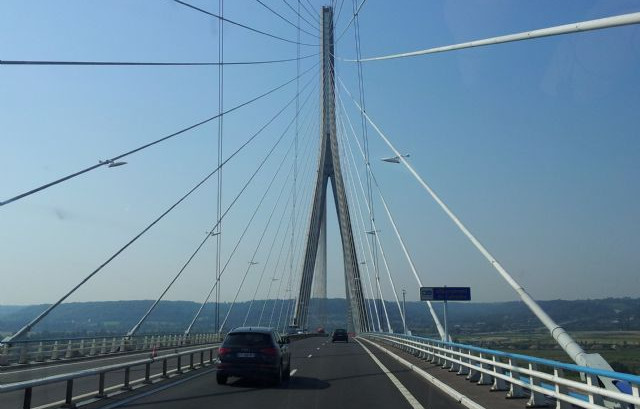 6° giorno (24.07.2014): lasciamo le falesie passando per Le Havre, direzione Honfleur attraversando il ponte della Normandia costruito negli anni 1994/95. Attraversare il ponte altissimo, sospeso nell’aria, ci da la sensazione di volare. E’ bellissimo.