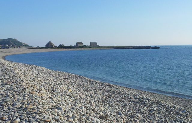 Da Cherbourg il viaggio è sempre più difficoltoso, abbiamo una cartina stradale che non ci offre indicazioni così dettagliate che invece ci sarebbero molto utili; per fortuna sul cellulare abbiamo il navigatore che Lorena usa con abilità. Attraversiamo paesi con case in pietra e tetti in ardesia, piccoli, isolati, curati nei particolari. L’ultimo è Auderville, preludio a un paesaggio quasi irreale. E’ il pomeriggio del 25 luglio, venerdì, il sole e un clima mite ci accompagnano alla vista che si apre ai nostri occhi. Goury, nient’altro che spazio, mare, cielo, natura allo stato puro della sua essenza. Un faro nel mare domina la scena, abbracciato dalla spiaggia di ciottoli di granito rosa, nero, grigio, erosi e levigati dal mare e dalle maree. E’ una macchia chiara in contrasto con le selvagge rocce scure che sul mare spuntano minacciose e sferzate dal vento. Completa lo scenario un tappeto verde pianeggiante e piccole colline sulle quali due piccoli villaggi si adagiano con le loro casette. La strada finisce qui, non nulla oltre….solo un piccolo centro fatto di tre case di cui una Office de tourisme (si perché in Francia trovi l’ufficio del turismo con tutte le informazioni di cui hai bisogno anche in capo al mondo) e solo qualche turista avventuriero come noi. Un chilometro prima abbiamo trovato una piccola area di sosta camper, senza acqua e senza corrente, dove c’erano un paio di camper arrivati prima di noi. Dal camper una vista mozzafiato. Prendiamo le nostre bici e di nuovo verso il mare. Passeggiamo lungo la spiaggia di ciottoli, Lorena raccoglie sassi tra cui sette pietre piatte nere per i chakra. Domenico invece raccoglie delle bellissime conchiglie bianche che sembrano tante piccole tazzine. Questo posto ha un’energia particolare. Arriviamo a piedi a un bunker in cemento residuo dell’ultima guerra. Saliamo sulla sommità dove veniva posizionato il cannone che puntava verso il mare e il pensiero subito ai tanti ragazzi che diedero la loro vita per concedere a noi un futuro migliore. Subito dopo un residuo di una costruzione dove nel 1902 fecero i primi esperimenti di telegrafo senza fili….il pensiero immediato al nostro Enrico Fermi.