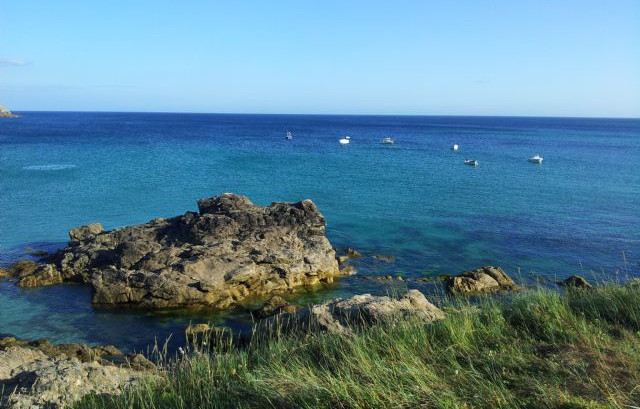 13° giorno (31.07.2014): salutiamo con nostalgia Pont Aven, ripromettendoci di tornare e riprendiamo il nostro viaggio. Arriviamo a Quiberon avendo strada facendo già pranzato in camper; l’area sosta è a due chilometri dal centro, è fuori mano, ma è anche l’unico della zona, prendiamo le nostre bici e raggiungiamo la città che la troviamo bella e abbastanza moderna. La baia è ampia e lunga, il clima piacevole, ma il mare anche se invitante conosciamo quanto sia freddo. Giriamo con le nostre biciclette fino al porticciolo dove erge un piccolo faro. Di fronte un piccolo atelier di un pittore che espone i suoi quadri insieme alla sua compagna che invece ha oggetti d’arte. Facciamo due chiacchere con loro prima di fermarci a la patisserie per cercare un dolce bretone buonissimo che avevamo assaggiato a Locronon. Invece ci dobbiamo accontentare di una tortina che andiamo a degustare in riva al mare. Poco vicino a noi un piccolo castello sul mare. Per tornare verso il camper percorriamo la Cote Souvage e ci fermiamo sulla scogliera in un delizioso ristorantino assolato. Mangiamo frutti di mare e crostacei (huitre, crabe, langoustine) e beviamo dell’ottimo rosè.