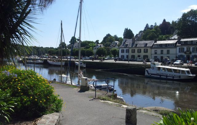 12° giorno (30.07.2014): decidiamo di passare almeno tutta la giornata a Pont Aven. Le strade sono piene di gente che entra e esce dagli innumerevoli negozi e atelier. Anche noi approfittiamo per visitare gli atelier, tutti espongono quadri bellissimi, all’insegna della fama che la cittadina porta con se. Qui, nella seconda metà dell’ottocento, un gruppo di pittori impressionisti guidati da Paul Gauguin fondò la famosa scuola di Pont Aven. Ci affascina l’uso spavaldo dei colori che i maestri impressionisti hanno saputo riportare sulle tele rappresentando luoghi di mare e scogliere dalle mille tonalità. Domenico rimane affascinato dalla tecnica che ama di più: lo spatolato. Qui trova in questa tecnica il massimo della sua espressione. Ci fermiamo più tardi a bere in un bar lungo la strada principale ancora frequentatissima. Domenico prende una buonissima birra bretone, Lorena un’acqua alle violette. Durante il giorno scopriamo un’altra area sosta attrezzata e quindi decidiamo di spostarci e così rimaniamo un’altra notte.