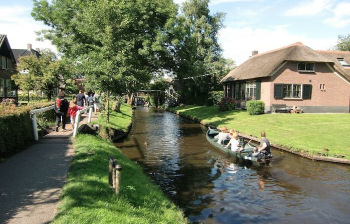 Arriviamo in serata a Giethoorn Per il pernotto c'e' un parcheggio con docce e bagni che pero' troviamo solo il giorno dopo