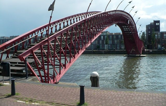 Amsterdam City Camp in Paparweg 50. Nuovo city camp purtroppo senza servizi ma fantastico dal punto di vista logistico. A 700 mt parte un traghetto gratuito che in 15 min ci porta alla stazione centrale di Amsterdam. Questa visita si concentra sulle nuove urbanizzazioni ricavate dalla riorganizzazione dei docksland. Siamo nelle penisole dietro la stazione Java, Silodam, Knsm, Borneo dove gli appassionati di architettura e non solo, possono godere di come è stata riconcepita l'area. Begli gli edifici e i ponti tra i quali spicca il Borneo-Sporenburg Bridge a forma di lucertola.