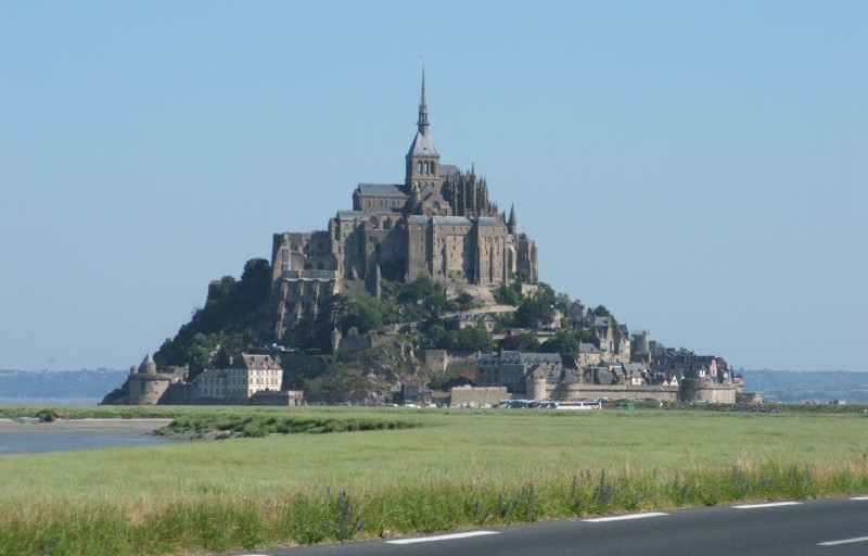 Dopo pranzo siamo nuovamente in marcia e parecchi chilometri prima, d’improvviso e prima di quanto pensassimo, si intravedono le guglie della cattedrale che domina il famosissimo monte. L’immagine è sempre più nitida e verso le 16.00 raggiungiamo l’ Area di sosta che ci ospiterà per la notte. All’ingresso paghiamo 8.00 euro per 24h incluso C/S e 220v: l’addetta che ci accoglie è gentilissima e l’area di sosta è incredibilmente bella. Piazzole di dimensioni esagerate (circa 10x10mt!), quasi tutte ombreggiate e su fondo erboso tenuto in modo impeccabile. La scarsa presenza di ospiti rende tutto ancor più bello e la tranquillità è assoluta. Siamo a due chilometri esatti dal monte che subito raggiungiamo con le bici (ma sono molti coloro che percorrono la strada a piedi). Visitiamo il complesso di stretti viottoli che di fatto sono una lunga serie di botteghe tra souvenir e ristorazione in genere. Assistiamo poi al fenomeno della marea che sale: niente di sconvolgente (le escursioni in questo periodo sono molto limitate) ma è comunque uno spettacolo unico al quale difficilmente si assiste nella vita di tutti i giorni. Rientriamo al camper per la cena con la promessa che torneremo al tramonto per vedere questa meraviglia sotto “un’altra…” luce.