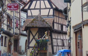 RIQUEWIHR. Purtroppo non troviamo posto in nessuno dei parcheggi segnalati ( Aire Municipale, Avenue Jacques Presis, 15 posti ,in centro carico e scarico, N.48.16615 E.7.30180 oppure parcheggio autobus N.48.16505 E.7.29795 ) e ci sistemiamo in uno spiazzo poco prima del centro. Questo è il più grazioso villaggio della Route du Vin. La varietà dei vini è notevole : si va dal Pinot Gris al Tokaj, dal Gewurztraminer al Riesling. A Riquewir vi sono ancora antiche stradine acciottolate, cortili circondati da porticati, romantici bastioni e torri di vedetta. Inoltre è possibile visitare la Tour des Voleurs ( sala delle torture ) , la Cour des Bergers ( i giardini )e … un negozio di Natale di Kathe Wohlfart ( favoloso!).Anche qui acquistiamo alcune bottiglie di vino e una piccola forma di formaggio Munster, tipico della zona. Ma per non passare per ubriaconi e per darci un tono più “ambientalista”, ci ricordiamo che l’Alsazia è famosa per le cicogne e che poco distante c’è una città che ne ha fatto una bandiera, e quindi andiamo a