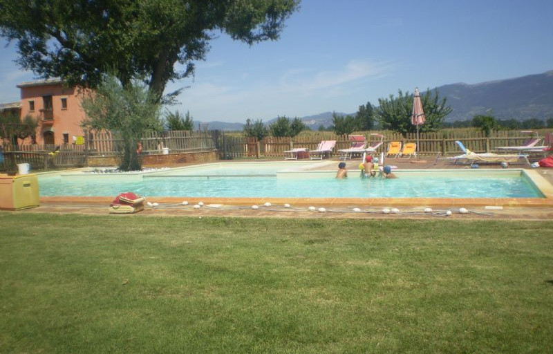 Alle ore 17.30 circa partiamo ed alle ore 19.15 circa arriviamo alla nostra meta, l'Agricampeggio Il Giardino degli Elfi posto in località Cantalupo a circa 4 km dal paese di Bevagna. All'arrivo l'agriturismo si presenta subito molto curato e decisamente tranquillo. Ci sono tre piazzole grandi e su erba, con attacco luce e carico acqua potabile. Posizioniamo il Camper e iniziamo subito ad ammirare il panorama che ci offre questa struttura da cui si scorge il Monte Subasio, Assisi, Spello e tutta la vallata. La sera la temperatura scende repentinamente cosicché la cena iniziata in veranda viene terminata all'interno del Camper. La notte passa in un silenzio spettacolare e la mattina, dopo aver fatto colazione, ci tuffiamo nella piscina della struttura. La giornata viene passata in totale relax tra un bagno e l'altro accompagnati dal suono delle galline e delle caprette, che spettacolo. Prima di cena decidiamo di lasciare a malincuore questo piccolo paradiso per spostarci nel paese di Bevagna. Qui sostiamo in un parcheggio gratuito per Camper, con camper service, che si trova nelle immediate vicinanze del centro. Visto che il paese lo avevamo già visitato quest'inverno, facciamo una breve passeggiata dopodiché ci fermiamo a mangiare una pizza (io avrei preferito qualcosa di più ma le bimbe erano in maggioranza). Passiamo anche qui un tranquilla nottata e l'indomani ci trasferiamo a Montefalco(PG).