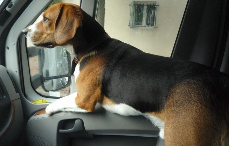 Il viaggio per me è complicato, io vorrei stare sul suo sedile o sulle sue gambe o sotto i piedi di Pà mentre guida. A loro non va così io continuo avanti e indietro. Sono un po’ grande, per girarmi vado in fondo al camper e mi giro, torno, e riprendo il mio via vai.