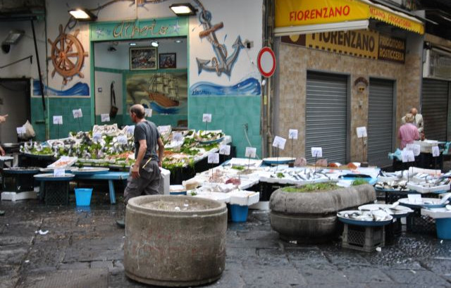 Qui , mangiamo una sfogliatella da Ciro, tra le più famose di Napoli e molto buona.Facciamo la fila per la sfogliatella ed un caffè, e proseguiamo la passeggiata dove troviamo parecchi venditori di pesci .