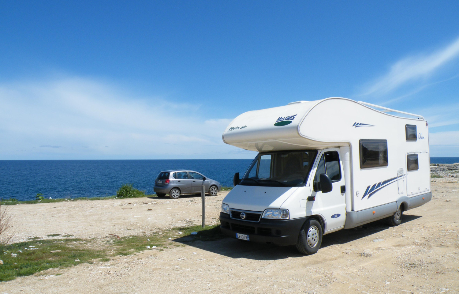 Polignano a Mare dove pensiamo di dormire. Guardando il Portolano vediamo che la città non offre niente, né campeggi né aree di sosta, quindi ci mettiamo alla ricerca di qualche parcheggio o piazzale dove potrebbero esserci altri camper, ma niente. Durante la ricerca mi addentro in una strada a senso unico che improvvisamente, senza alcuna segnalazione, svoltando si strettisce a tal punto che mi accorgo di non poterci passare. Tento di fare manovra per tornare indietro a retromarcia rendendomi conto però che dietro si sono accodate altre vetture. Non vedendo altre vie di fuga possibili ma solo vie strettissime mi prende un attimo di panico. Vedo una viuzza un po’ più larga delle altre con delle auto in sosta e a colpo d’occhio mi sembra che se anche per pochissimo possiamo passarci. A passo d’uomo, piano piano riusciamo a venirne fuori!!