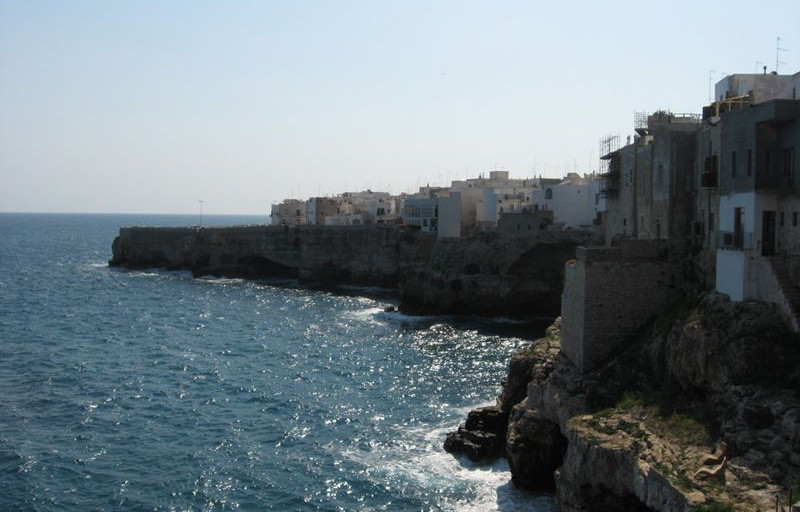 Lunedì 24 agosto - decidiamo di andare in moto a Polignano a mare, il paese è molto suggestivo, le case a strapiombo sul mare azzurro e verde con le onde che si infrangono contro piccole insenature sabbiose e poi tanti scogli.Non riusciamo a fare il bagno perché il mare è troppo mosso ma è comunque piacevole restare a bagno tra le rocce basse.