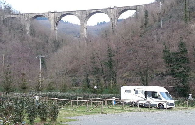 Andrea, titolare della struttura è di una cordialità ed ospitalità fantastica. Il posto sito ai piedi della antica ferrovia porrettana (vedi foto) è molto curato, piazzole grandi predisposte con colonnina luce, carico-scarico e il tutto a prezzi veramente accessibili. Non vi dico poi i suoi prodotti tipici... Noi abbiamo fatto la scorta di olio- miele - vino (già assaggiati tutti e vi garantisco sono eccezzionali). Posto quindi molto tranquillo anche perchè di notte siamo stati accompagnati da una fantastica "musica dell'acqua" di una cascata che si trova a 20 mt dalla piazzola
