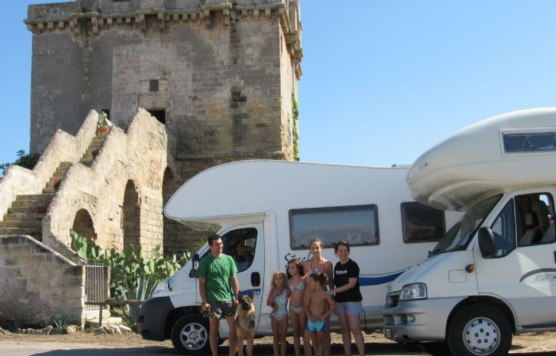 camper MC LOUIS 434 STEEL 100CV. battezzato GIALIS, giugno2009 KM percorsi 2480 gasolio =210euro autostrada = 90euro 30 luglio 2010 SOLIERA (MO)-TORRE COLIMENA Partenza verso le ore 16:30 ;dopo aver passato Ancona, ci fermiamo per la cena ,per poi ripartire alle ore21:00 .Verso le 24:00 ci fermiamo all'autogrill di San Severo per passare la notte. 31 luglio Sveglia all'alba ,dopo un buon caffe' e mentre le ragazze dormono, riprendiamo il nostro viaggio con arrivo a Torre Colimena verso le ore 10:00 e via in spiaggia per il primo bagno: l'acqua e' stupenda ,calda e limpida!!!!Circa dopo un'ora arrivano i nostri amici Maurizio,Roberta e i loro 2 figli, Arianna e Simone.Verso le 13:00 ci accingiamo a preparare e degustare il pranzo.Dopo, decidiamo di spostarci in un'area,visto che i nostri amici erano gia' in giro da tre giorni e avevano bisogno di un carico e scarico. L'area in cui sostiamo e' "IL SARACENO"localita' punta prosciutto"dove decidiamo di fermarci per 24 ore.Non ci sembra vero il mare che ci troviamo ad ammirare e' di una trasparenza mai vista,dopo entrati in acqua non ne usciresti piu'. 1 agosto