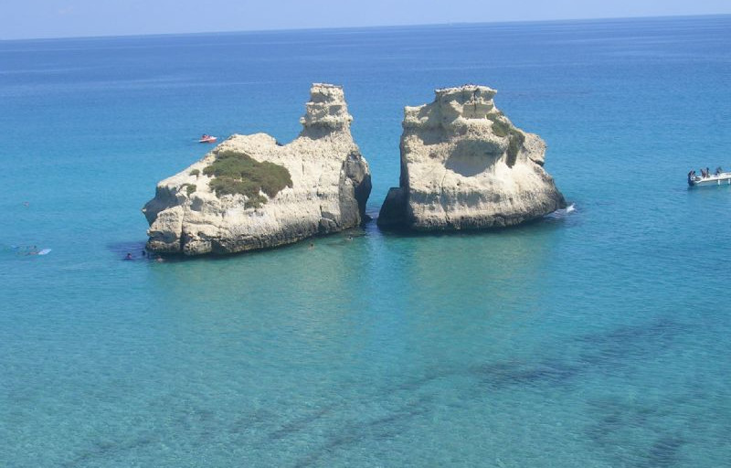 La meta da raggiungere è San Cataldo, 1°tappa salentina. La direzione è Locorotondo.Fasano;Brindisi,Lecce; San Cataldo.L’area scelta sarebbe AA Pic Nic Club(vista su COL sembra bellissima)Arrivati,siamo presi da sconcerto totale:uno spiazzo in mezzo ad alberi senza nulla, ne servizi,ne corrente,nessun mezzo ,nulla di nulla di quanto descritto sulle guide,lo squallore piu’ totale,solo un signore anziano che aspetta chissachi!!!!Delusissimi e dispiaciuti per quel signore anziano, facciamo dietro front direzione Sant’Andrea Torre dell’Orso,all’area Sant’Andrea Salento.. Finalmente ci siamo. Bellissima area su prato,blocco servizi igienici favolosi e pulitissimi,ombra e navetta gratuita per le spiagge,il tutto a 23 euro tutto compreso(chiedete di Daniele,sara’ lui ad accogliervi).C’è anche un Market ben fornito.L’indomani mattina ci facciamo accompagnare allo spiaggione di Torre dell’Orso,spiaggia bellissima con una stupenda pineta alle spalle.Il tempo finalmente è buono e facciamo tutti un bel bagno ristoratore. Dopo pranzo con le bici andiamo alla spiaggia di Sant’Andrea.Si tratta di una spiaggetta di sabbia fine attorniata da scogli bassi accessibilissimi dove Andrea fara’ dei tuffi di testa bellissimi.