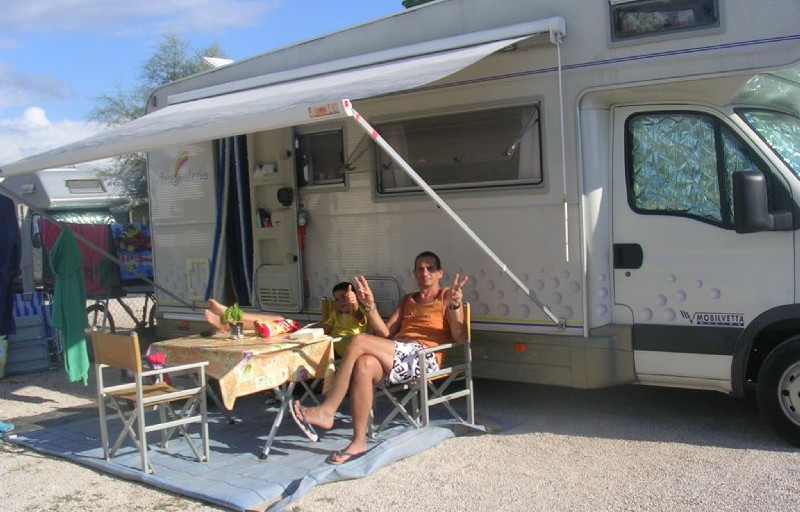 All’arrivo purtroppo troviamo un deposito barche con un angolo destinato ad accogliere i camper sotto tettoie semi artificiali in piazzole strette,e ad
