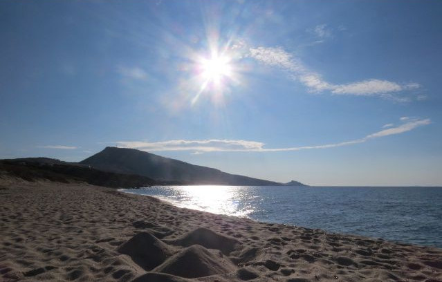 Dopo pranzo riprendiamo le bici e in 15 minuti arriviamo alla spiaggia di Lazzaretto, troviamo una bellissima caletta con non più di 10 persone.