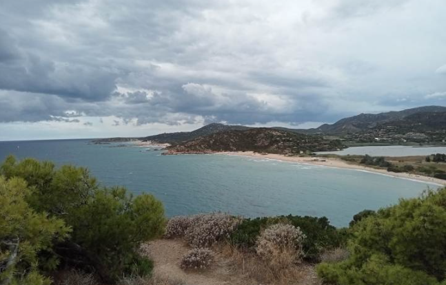 Sveglia presto e partenza per Cagliari, sosto alla Spiaggia di Sarroch, ma niente di che, proseguo per Pula, visito le rovine di Nora (euro 8,00 l'ingresso), interessanti. Proseguo per Punta Chia, dove ci sono una serie di spiaggette, mi fermo all'ultima a 'Cala Cipolla'. Parcheggio euro 8,00 più euro 5,00 per il pernotto. Parcheggio il camper e trekking a visitare Cala Cipolla ed il Faro. Spiaggia molto bella, il Faro un po' meno, non merita. Ritorno al camper, cena e pernottamento.
