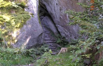 Sosta solo diurna in parcheggio 1,50 €, visita al labirinto 3 € a persona durata del percorso circa 2 ore tra scalinate cunicoli e picchi rocciosi; frecce blu indicano il percorso in salita, frecce rosse percorso di rientro, Ci spostiamo a Wunsiedel nel parcheggio camper fuori del paese 5 € a notte luce e acqua senza scarico.
