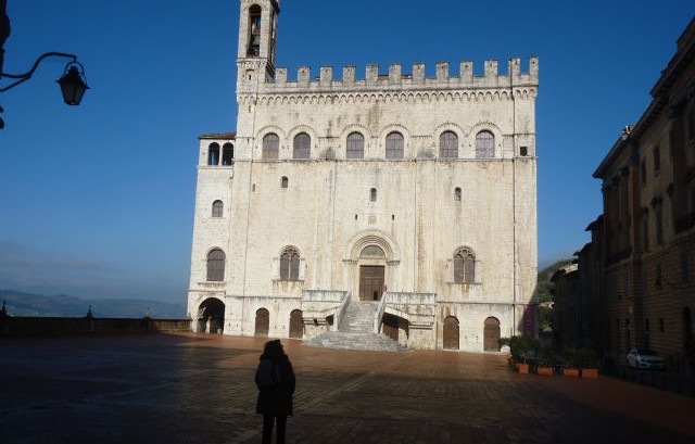 Il primo giorno di viaggio è stato il martedì 26-3-2013; si parte alla volta di Gubbio. usciti dall'autostrada a Civitanova Marche, abbiamo percorso la statale che porta a Gubbio, strada per un tratto agibile con gallerie. Appena entrati nell'ennesima galleria abbiamo lasciato alle spalle la pioggia , ignari di quello che ci aspettava. Infatti, usciti dalla galleria subito dopo Fabriano, ci siamo imbattuti in una nevicata così fitta tanto da non vedere in breve tempo il ciglio della starda: questa situazione per circa 5 km, potete immaginare la coda delle auto dietro di me anche perchè la strada era stretta e non potevano sorpassare. Imboccata un'altra galleria, all'uscita la neve era scomparsa ma era subentrata la pioggia . Per forthuna siampo arrivati a Gubbio. Il giorno dopo finalmente il sole ed è stato possibile visitare Gubbio: bellissima.