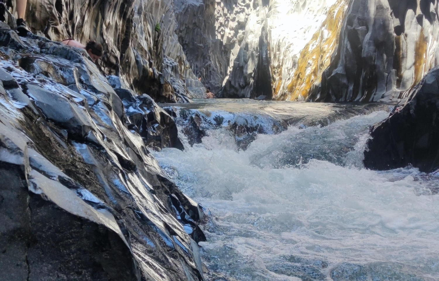 La mattina presto lasciamo l'area sosta di Giardini Naxos e proseguiamo il nostro viaggio alla volta delle Gole dell'Alcantara, arrivati a destinazione lasciamo il camper nel parcheggio davanti all'ingresso, offerta libera, ed optiamo per l'ingresso basic (10 euro a persona) ascensore ed escursione in autonomia.