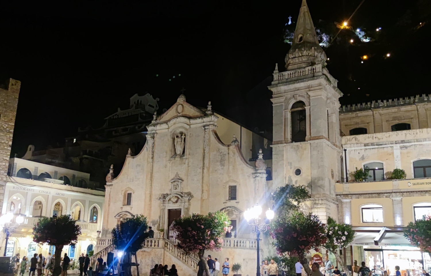 La sera decidiamo di tornare a visitare Taormina ma stavolta prendiamo il bus per Mazzarò e saliamo con la funivia (6 euro a persona) che in pochi minuti porta nei pressi del centro. Ritorno in autobus.