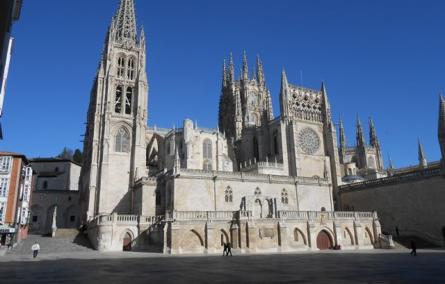 i chilometri di questo trasferimento sono tanti, ma sulle autovie spagnole si viaggia benissimo e raggiungiamo Burgos intorno alle 18. Il punto sosta (coord.) è vicino al centro storico, ma bisogna arrivare al massimo a quest'ora perchè tra poco diventerà affollatissimo. Ceniamo e poi andiamo subito in centro. La riflessione sul meteo fatta la sera prima dà subito i suoi frutti... appena arrivati davanti alla cattedrale dobbiamo fare dietro front e rientrare precipitosamente ai camper... acqua a catinelle! Pioverà tutta notte, ma per fortuna al mattino il cielo è sereno e possiamo visitare Burgos che si gira in un paio d'ore, ma è un gioiellino.