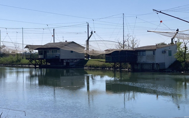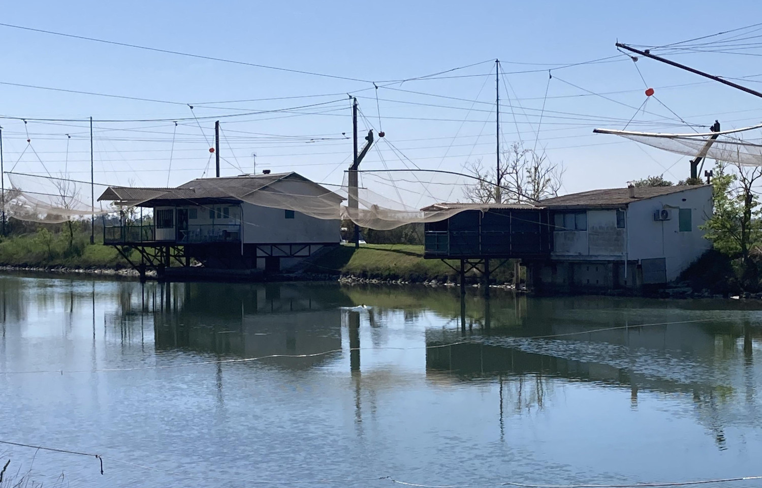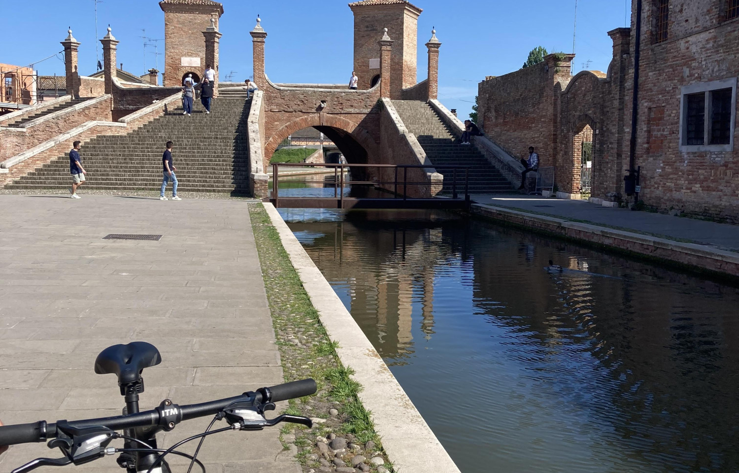 Pranzo al camper e partiamo per un giro in bici: uscendo dall'area di sosta a destra, sulla provinciale a sinistra e subito dopo il ponte a destra sul lungomare fino a Porto Garibaldi, passaggio sul canale attraverso una chiatta (0,80 cent persona + bici), lungo il canale verso Comacchio e poi a riprendere il giro in senso antiorario ad anello lungo la salina piccola che ci riporterà all'area di sosta (circa 25 km).