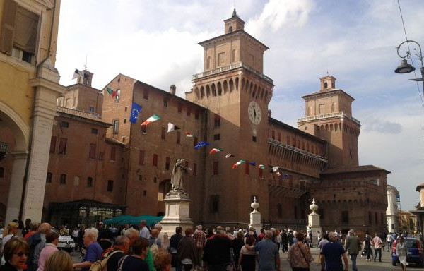 Dirigiamo quindi verso Ferrara dove parcheggiamo gratuitamente nell’area Ex Moi (N.44.83461 E 11.60800), in una parte del vasto parcheggio è ritagliata un’area di sosta (euro 6, possibilità di attaccarsi alla corrente), ma noi siamo stati nella parte libera (non è che ci fosse quella gran differenza). A Ferrara è possibile usufruire di una rete wifi gratuita. Dal parcheggio si prende, anche se è un po’ lento. Visitiamo nel pomeriggio la città compreso il Palazzo di Schifanoia con dei bellissimi affreschi. A sera ristorante (Botega e Cusina) segnalato in un altro diario, dove proviamo il pasticcio alla ferrarese, che troviamo eccezionale. Ottime anche i cappellacci del prete.