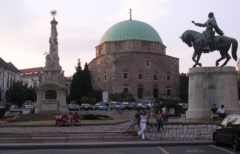 Andiamo quindi a cambiare al supermercato Tesco a 5’ di strada a piedi a sinistra sulla statale. Il cambio è a 242,5 ieri era molto migliore. Cambio 200€. Il supermercato è molto grande e aperto 24h. Torniamo dalla signora, paghiamo e aspettiamo che il caldo umido e opprimente diminuisca e alle 17:30 andiamo in città. Il campeggio è ben collegato 2-2A-27-31-43 in 4 fermate portano in centro. 260 il biglietto, che si può fare anche sul bus. Senza una vera guida ci arrangiamo per il centro, molto bello ma piccolo, bisognoso di qualche ulteriore restauro e animato in pochissimi luoghi fra cui la splendida piazza con la chiesa-moschea e la zona pedonale che da li comincia. Piena di gente, tavolini e bar.