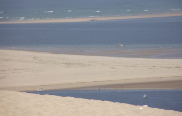 14/8/2012 Sveglia prima delle 8,00, carico e scarico ad Arcachon e poi via verso le due del Pyla, arriviamo nel parcheggio alle ore 9,05 e procediamo a piedi nei pressi della scala, iniziamo l’ascesa, la visione della duna è impressionante, alle nostre spalle la foret de les landes, di fronte a noi una duna immensa di sabbia finissima dorata e sopra il cielo azzurro. Arriviamo sopra ad essa, una visione spettacolare da un lato la foresta dall’altro l’azzurro intenso dell’oceano e in mezzo una lingua di sabbia lambita dalle acque. La visione dell’oceano sempre più chiara e poi giù giù fino alla spiaggia. Entriamo in acqua per nulla gelida sui 22 gradi. Rimaniamo spaparanzati al sole e dopo mezzogiorno risaliamo. Dopo alcune foto ritorniamo al camper per pranzare. Dopo aver mangiato ci rechiamo alle casse euro 10 per 8 ore, è impossibile sostare alla notte. Quindi ci dirigiamo all’area sosta camper a Biscarrosse. Posteggiamo e ci rechiamo alla spiaggia attraverso un’altra piccola duna, stessa sabbia finissima e onde maestose. Vi è anche la doccia, dopo aver poltrito in spiaggia cena in camper. Passeggiata serale e rientro in camper. Costo al giorno euro 12 compreso carico e scarico all’ombra della pineta con possibilità di apertura tendalini, tavolini ecc.