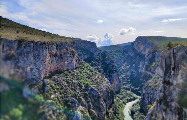 Dopo pranzo ci rimettiamo in marcia e ritorniamo verso il Verdon, facciamo un po' di strada per “avvicinarci” a casa. Qui ci sarebbero tanti posti da vedere, li teniamo per la prossima volta (Oppede, Bonnieux, Lourmarin). Noi ci dirigiamo verso la D71, altra strada panoramica e arriviamo ad Aiguines dove passiamo la notte SPOT con vista SUPER trovato su P4N appena prima di entrare in paese (spazio per 1-2 camper max).