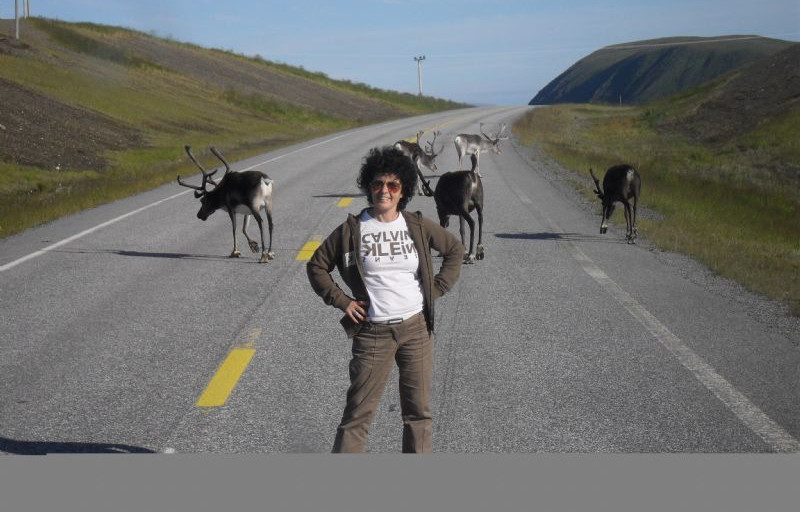 Ci fermiamo dopo Inari ad un negozio di oggetti nordici, la gente ha quasi i tratti somatici eschimesi, le macchine trasportano pelli di renna e attrezzi per l’inverno o per andare a caccia, fino a qualche anno fa’ gli orsi vivevano qui e si cibavano dei cadaveri nei cimiteri…………e’ un altro mondo. Di nuovo per strada, praticamente stiamo tutti davanti a vedere le cose che ci circondano, la strada e’ impervia, piena di curve stretta che quando incroci un altro camper o un camion devi quasi fermarti, poi avallamenti, sali-scendi al 10% costeggiando sulla destra il mare e a sinistra la montagna. Si sale sempre piu’. Quando mancano 100 km le Renne sono numerosissime, ti attraversano la strada all’improvviso, non si scansano e sei costretto a fermarti e ne approfittiamo per delle istantanee. Insomma tutto diventa cosi bello e difficile ma….molto affascinante.