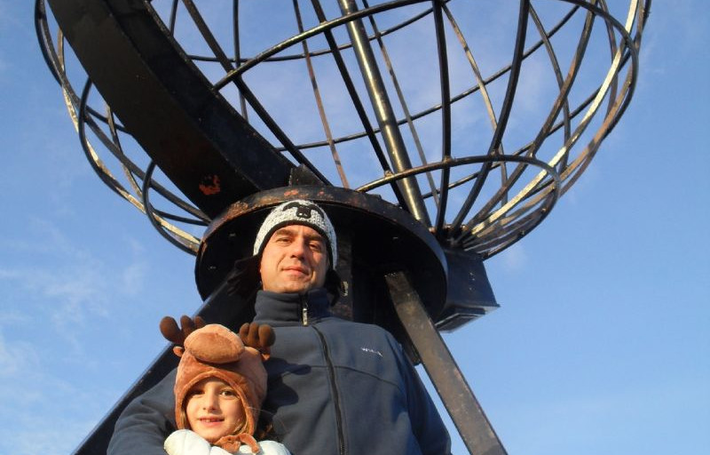Imbocchiamo il famoso tunnel di 7 km precisamente 6870 mt per meta’ in discesa e meta’ in salita (70 euro andata e 70 euro ritorno), tanto che ho dovuto mettere la seconda per un momento, siamo all’isola di Mageroja e passiamo Honnisvag. Non ci fermiamo vogliamo arrivare!! Si sale, praticamente tutte curve e colline poi il deserto e mare. Poi ad un tratto scorgiamo da lontano in salita un gabbiotto, con la scritta Nordkapp, (scendiamo e facciamo la foto anche con lui), ci avviciniamo vogliono 80 euro per 2 notti senza acqua pozzetto ed altro ma c’era lui………..il Mappamondo simbolo del punto piu’ settentrionale d’Europa. Parcheggiamo il mezzo e col sole pieno notiamo il piazzale pieno di camper e una gran soddisfazione di essere arrivati li, con tutti i miei figli. Avevo promesso a me stesso che ce l’avrei fatta. Veder Daniela dopo quello che ha passato ridente saltellare di gioia e i miei tre gioielli contenti per aver raggiunto quel posto, e’stato per me una delle piu’ grandi soddisfazioni . Insomma, li non c’era un gran che, era finita la strada e quindi ci siamo goduto questa giornata. Ma chi ti incontriamo? E si ancora loro gli olandesiii!!!